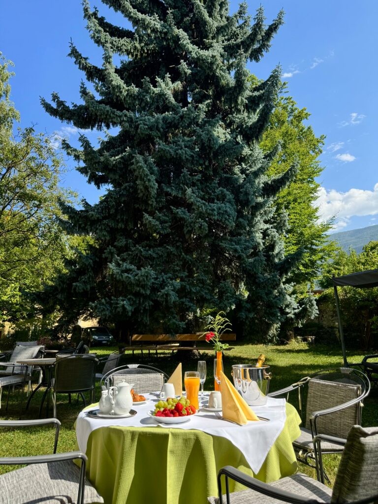 Nach dem Frühstück verabschieden Sie sich von Schlanders und radeln inmitten von Apfelplantagen weiter von Dorf zu Dorf. Versäumen Sie nicht, zumindest einige der Museen und Kirchen auf Ihrem Weg zu besichtigen, etwa die gotische Spitalkirche in Latsch, die der Heiligen Dreifaltigkeit geweiht ist. Heutiges Ziel ist die Kurstadt Meran, die zweitgrößte Stadt Südtirols und seit langer Zeit bekannt und beliebt für ihre großen, heutzutage bis in den Abend geöffneten Thermen.