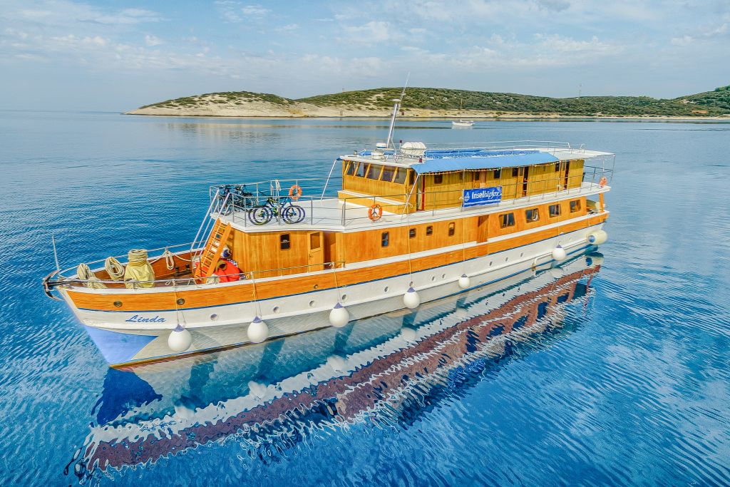 Die geräumige Motoryacht aus dem Jahr 1955 wurde 2006 komplett renoviert und segelt entlang der Küste des Kvarner-Golfs.